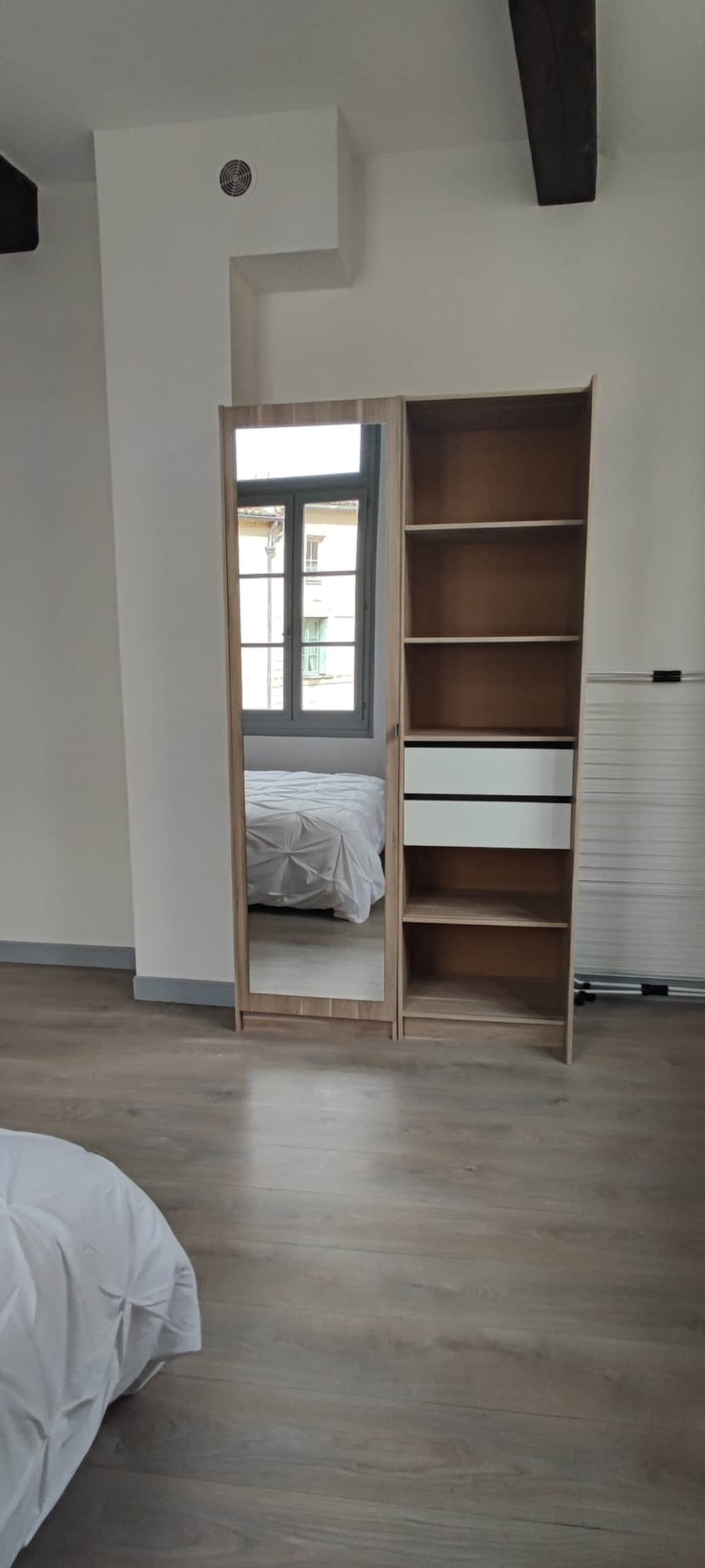 Au premier niveau vous serez conquis par cette pièce à vivre spacieuse et élégante qui offre une vue imprenable et vous disposerez d'une cuisine toute équipée ouverte sur le séjour et son salon. Au deuxième, une chambre atypique très lumineuse avec sa vue plongeante sur le centre historique, une salle d'eau et WC. Calme, pas de restaurant ou bar sur la place.